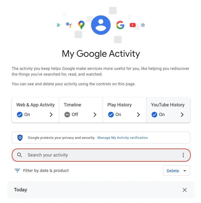 - Go to your My Google Activity homepage (this is the same page you saw when first signing into myactivity.google.com)